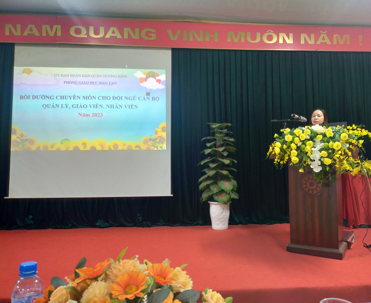 Nhằm thực hiện hiệu quả nhiệm vụ Giáo dục Mầm non năm học 2022 - 2023, tiếp tục nâng cao chất lượng đội ngũ giáo viên và chất lượng chăm sóc, giáo dục trẻ trong các cơ sở GDMN trên địa bàn quận, trong 03 ngày 22,23 và 24/2/2023, Phòng GDĐT Quận Dương Kinh tổ chức "Bồi dưỡng chuyên môn cho đội ngũ cán bộ quản lý, giáo viên nhân viên năm 2023". Trường Mầm non Tân Thành đã cử các đồng chí cán bộ, giáo viên, nhân viên tham gia đầy đủ, đúng thành phần theo công văn triệu tập của PGDĐT. Với tinh thần học hỏi cao, các đồng chí cán bộ, giáo viên, nhân viên đã tích cực trao đổi, thảo luận, chia sẻ kinh nghiệm thực tế, tham gia vào các hoạt động cùng làm rõ những vấn đề được đề cập. Qua buổi tập huấn, các học viên đều nắm chắc những nội dung đã triển khai.