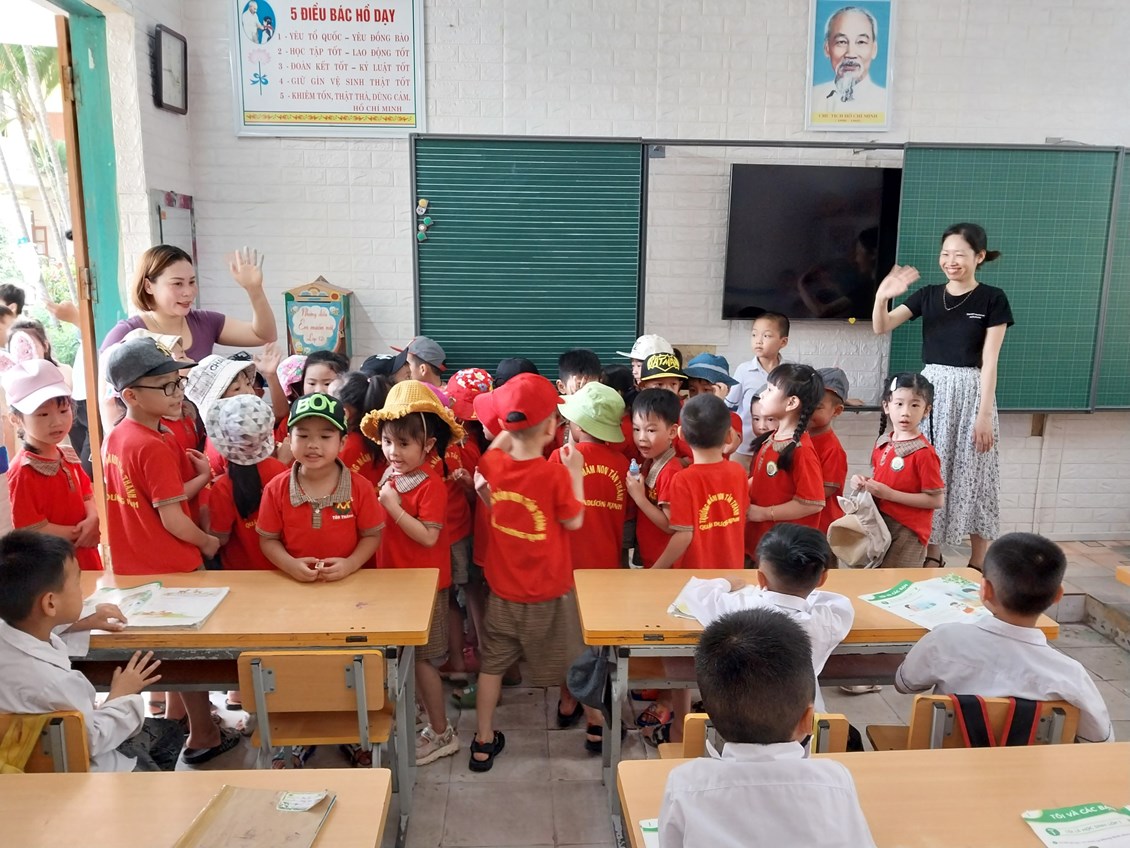 Vào lớp 1 là một bước ngoặt lớn đối với các bé học sinh 5T. Đây là giai đoạn các con có sự thay đổi lớn khi các con chuyển từ môi trường mầm non “học mà chơi, chơi mà học” sang môi trường nề nếp của việc học tập. Để giúp các con có sự chuẩn bị tâm thế tốt nhất khi bước vào lớp 1. Ngày 19/5/2023 Trường MN Tân thành đã tổ chức cho các bé lớp 5T đến thăm quan trải nghiệm tại trường Tiểu học và THCS Tân Thành. Đây là hoạt động trải nghiệm ngoại khóa có ý nghĩa quan trọng giúp trẻ được làm quen với môi trường học tập mới mà trẻ sẽ tiếp tục học tập trong giai đoạn tiếp theo.