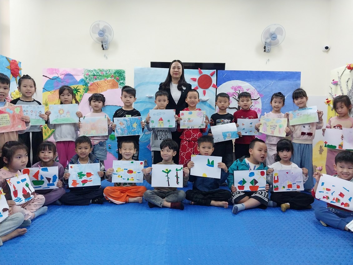 Về dự với hội thi có các cháu học sinh 5T đã xuất sắc vượt qua vòng sơ khảo tại các lớp. Tại cuộc thi này các bé sẽ tham gia các nội dung thi: Vẽ tranh bằng các chất liệu màu, tranh xé dán.