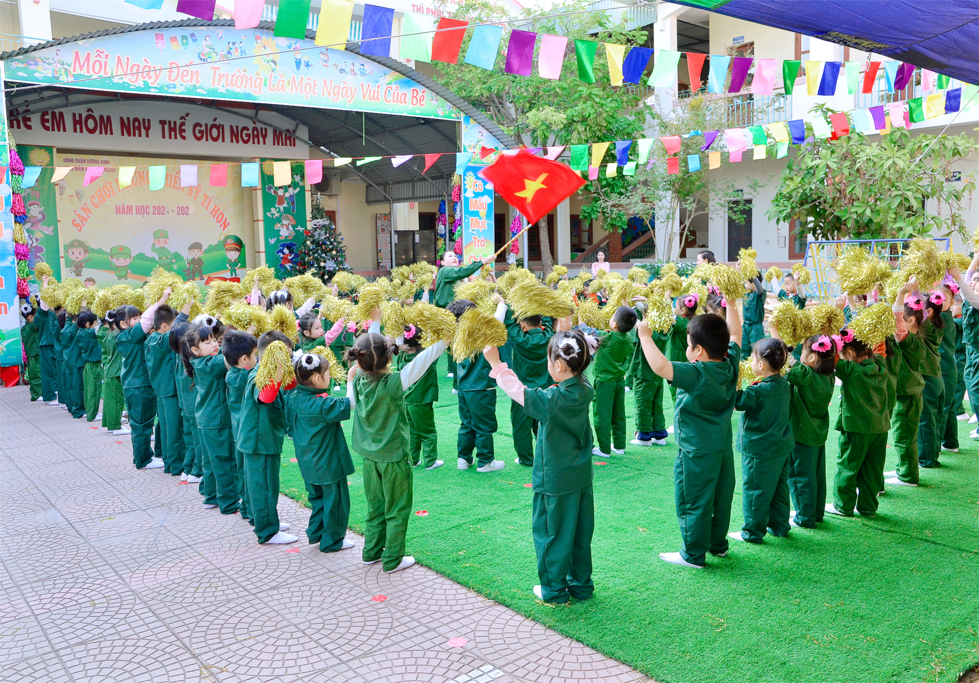 Thực hiện sự chỉ đạo của PGD&ĐT Quận Dương Kinh ngày 20/12/2024 trường Mầm non Tân Thành long trọng tổ chức sân chơi “Những chiếc sĩ tí hon”. Với mục đích tạo cơ hội để trẻ mầm non phát triển toàn diện, nâng cao năng lực thể chất, trí tuệ, kỹ năng xã hội. Thông qua các hoạt động vui chơi mang tính sáng tạo và bổ ích dành cho trẻ mầm non nhằm hướng tới kỉ niệm 80 năm ngày thành lập quân đội nhân dân Việt Nam 22/12; góp phần “Nâng cao chất lượng giáo dục phát triển vận động cho trẻ mầm non”. Giúp trẻ phát triển các tố chất nhanh, mạnh, bền, khéo; tăng cường tính độc lập, tự chủ, mạnh dạn, tự tin, tích cực, rèn luyện tính kỷ luật, tinh thần đoàn kết, khả năng tự lập và xử lý tình huống. Trẻ được tham gia vào một sân chơi an toàn, lành mạnh, kích thích trẻ khám phá và thử thách bản thân. Góp phần đẩy mạnh phong trào thi đua “Xây dựng trường học hạnh phúc Tôn trọng quyền trẻ em, thân thiện, an toàn và sáng tạo” trong các cơ sở giáo dục mầm non. Qua ngày hội tuyên truyền sâu rộng tới các bậc phụ huynh và cộng đồng về việc tổ chức chăm sóc, giáo dục trẻ theo khoa học tạo sự quan tâm, phối kết hợp giữa gia đình, nhà trường và xã hội trong việc chăm sóc giáo dục trẻ, nhằm tạo điều kiện cho trẻ phát triển toàn diện cho trẻ. Dưới đây là một số hình ảnh của sân chơi: